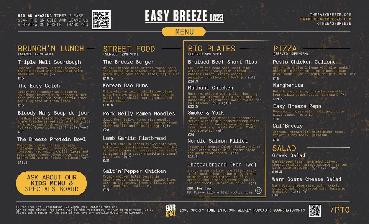 Welcome to The Easy Breeze, a culinary gem nestled in the picturesque Bowness-on-Windermere. This charming eatery invites diners to indulge in a menu brimming with hearty offerings and refreshing dishes. Standout items include the Braised Beef Short Ribs, which melt in your mouth, and the Makhani Chicken, showcasing rich flavors and comforting sides.